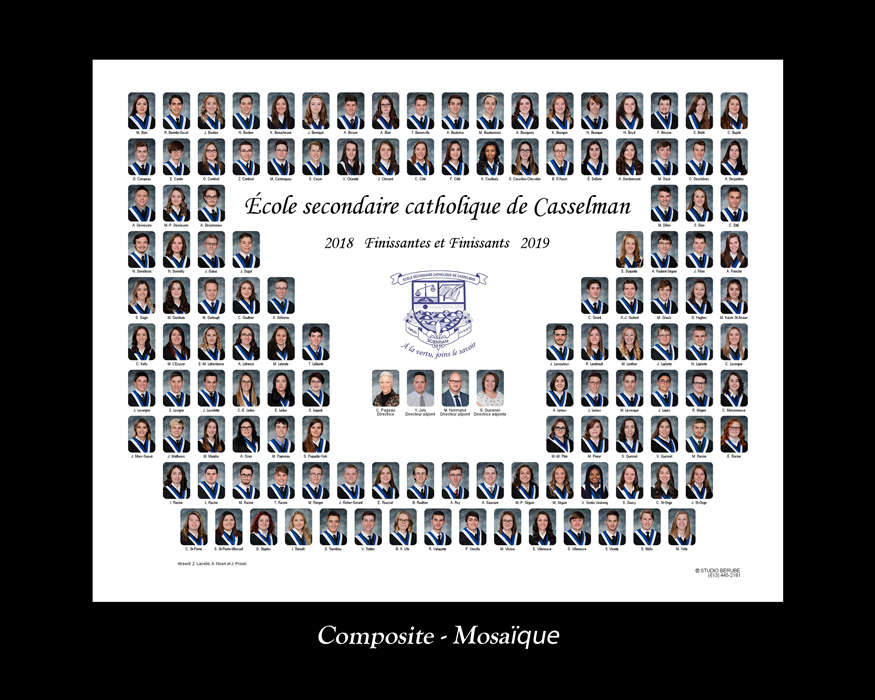 We also offer group photos and class composites. The composite photograph is made up of portraits of all graduating students. Each portrait is labeled with the individual's name for a lasting memory of your graduating class.